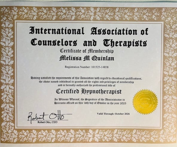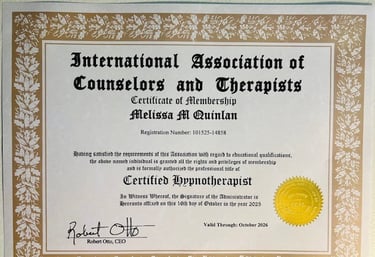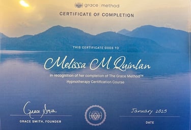 I'm Melissa, a Grace Smith certified Hypnotherapist (CHt) with a BA in Psychology — but more than titles or credentials, I am a guide, a space-holder, and a believer in the limitless power that lives within each of us.